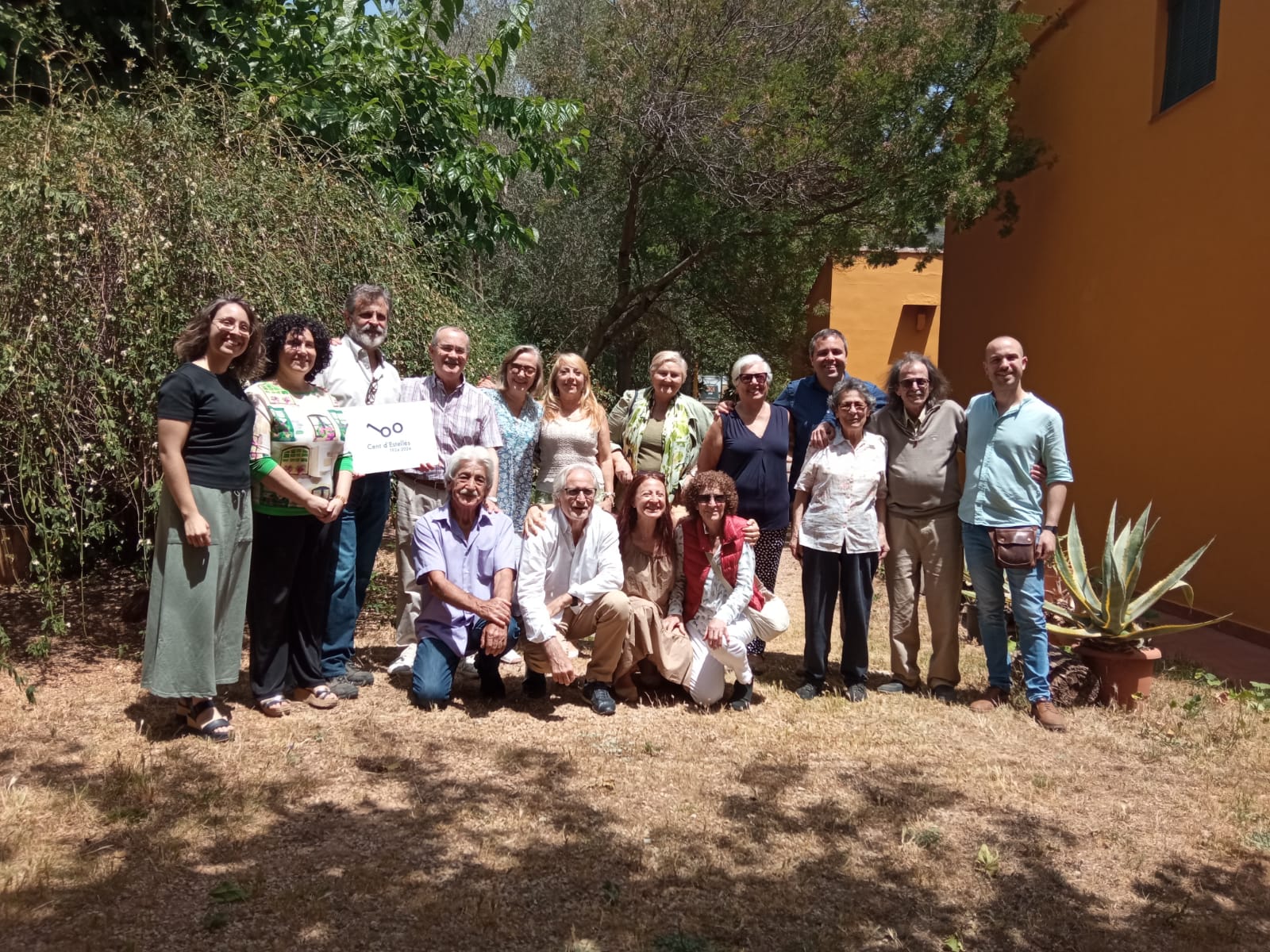 Aquesta foto és la nostra humil contribució al reconeixement del poeta valencià Vicent Andrés Estellés en el seu centenari. Aula Vocal 5 és una coral de València. Ahir, 26 de maig de 2024, cap a les dotze arribàrem amb els nostres vehicles a la Drova i visitàrem la casa del poeta valencià Josep Piera i de Marifé Arroyo, lluitadors ambdós des de les aules per la nostra llengua, la nostra cultura. El motiu era cantar la música escrita per un dels nostres directors, Xavier Garí, arran d’una traducció de Josep d’un escrit del poeta valencià Ibn Khafaja, nascut a Alzira, que visqué entre el segle XI i XII. Va ser un matí deliciós. Marifé tragué cadires per a tothom per a que, una vegada asseguts sota l’ombra d’una morera, tinguérem el millor escenari possible per a la paraula. Josep ens parlà de la seua traducció, dels mots valencians o catalans més curts que faciliten la métrica, d’Ibn Khafaja, de la seua vida i poesia… en fi, Josep parlava i nosaltres ens deixàvem endur per totes les coses que ens contava, com en un ensomni. Després cantàrem la peça ‘Lament andalusí a la caiguda de València’ i un arranjament, també de Xavi Garí, sobre el ‘Cant dels Ocells’. En acabar, ens férem una foto de grup i traguérem un cartell que havíem preparat amb l’anagrama Cent d’Estellés. En veure la foto, el cartell sembla massa xicotet, però bé, la nostra intenció és que en tots els actes que programarem d’ací a final d’any, Vicent Andrés Estellés estiga sempre present.