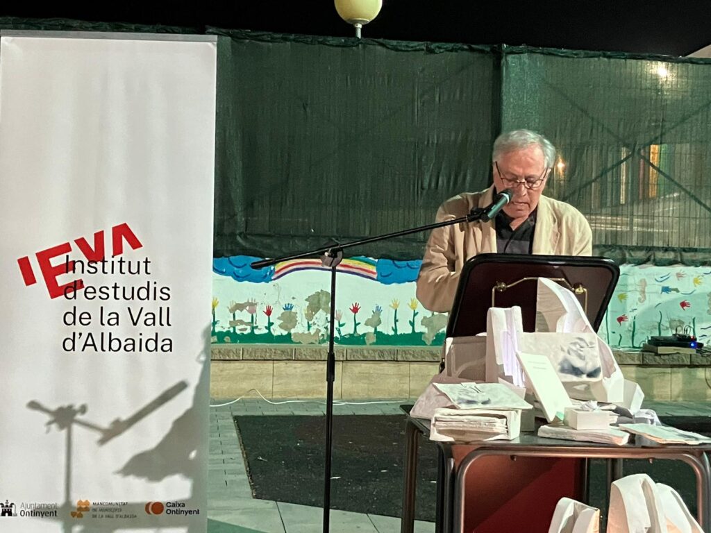 L’Institut d’Estudis de la Vall d’Albaida va dedicar el seu sopar anual d’estiu a Vicent Andrés Estellés, de manera que va oferir micròfon per a possibilitar una lectura popular de versos del poeta. Ací teniu unes imatges de l’activitat el 28 de juny passat.